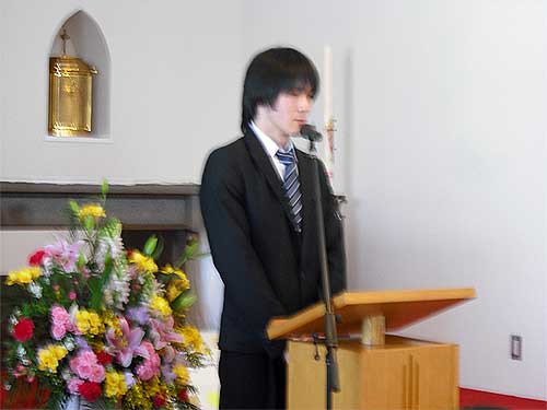 いろんな人の協力で教会を建てることが出来てとても感謝しています。これからは皆さんと一緒に教会の様々な活動を共に協力しながらやっていきたいと思っています。これからもよろしくお願いします。ありがとうございました。(五十嵐真理)