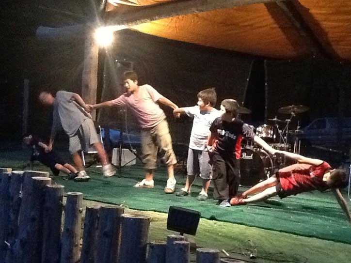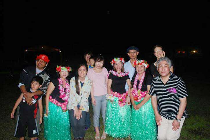 祭りのステージにはサマースクールの子供達も「組み立て体操」で参加し見事な演技を披露しました。また新庄教会フィリピン人信徒によるフラダンスは、真夏の夜のステージを盛り上げ、観衆から盛大な拍手を頂きました。