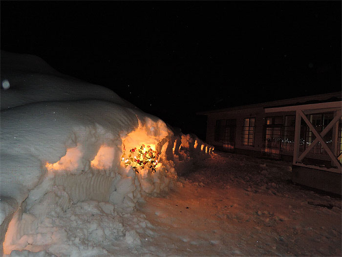 2016年2月6日と7日の二日間、菊地功司教様が新庄カトリック教会を訪問されました。そして毎年の行事「雪の聖母祭」も行われ、司教様と一緒にお祝いする事が出来てとても嬉しかったです。2月6日土曜日の午後6:30からロザリオが始まり、その後千原神父様がマリア像を持って先頭に立ち、他の参列者はろうそく&ばらの花を持って歌を歌いながら外に向かって行列をし、雪の壁に穴を掘って作った祭壇に「マリア像」を置いて、バラとロウソクを捧げました。その後鍋パーテイが始まり、食べながらいろいろな分かち合いをし、カラオケと千原神父様のギターで歌を歌って終わりました。